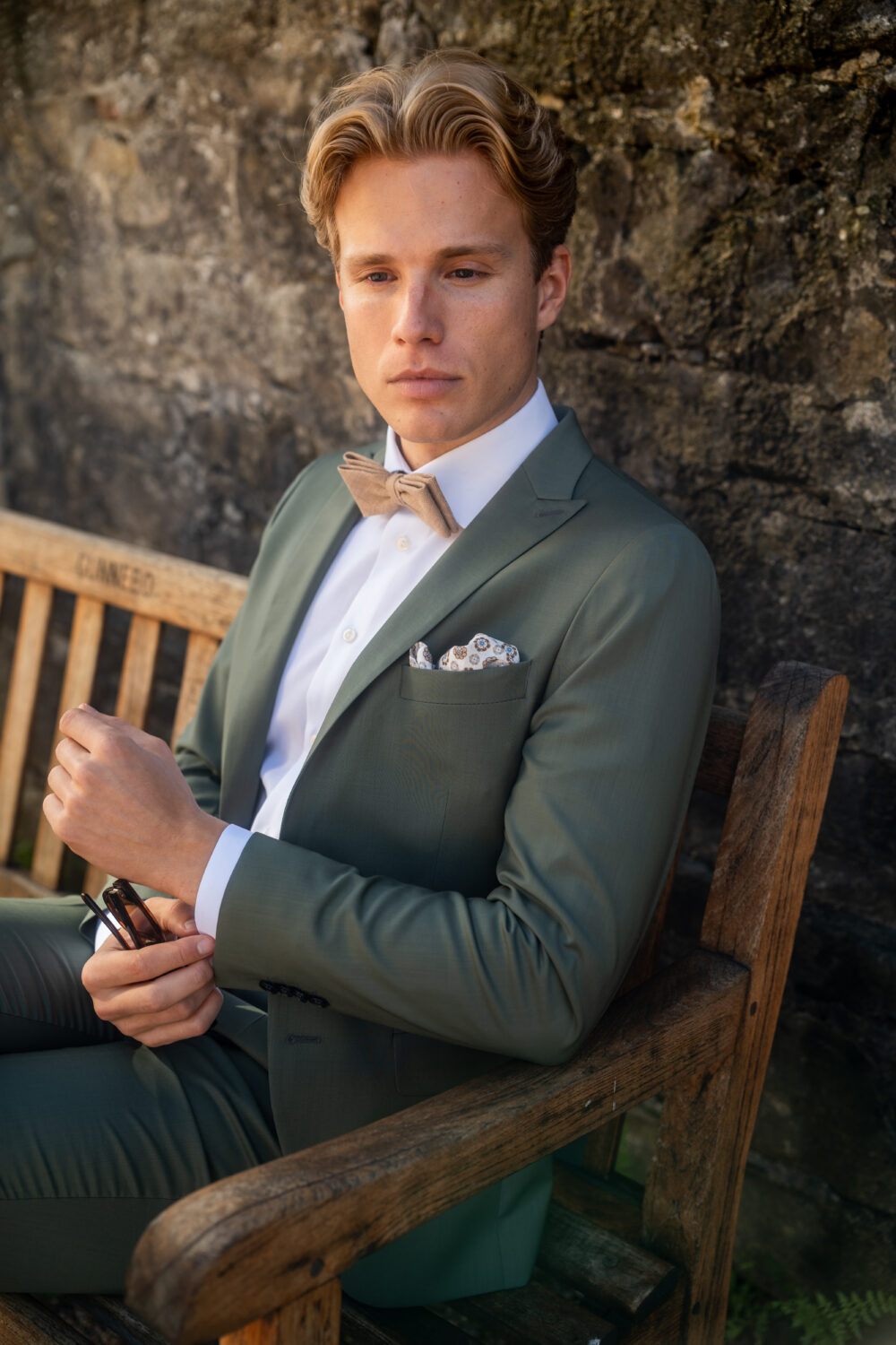 Dieser stilvolle Hochzeitsanzug in edlem Salbeigrรผn steht fรผr moderne Leichtigkeit und zeitlose Klasse. Der besondere Farbton verleiht dem Look eine frische, elegante Ausstrahlung und ist die perfekte Alternative zu klassischen Blautรถnen oder Schwarz.