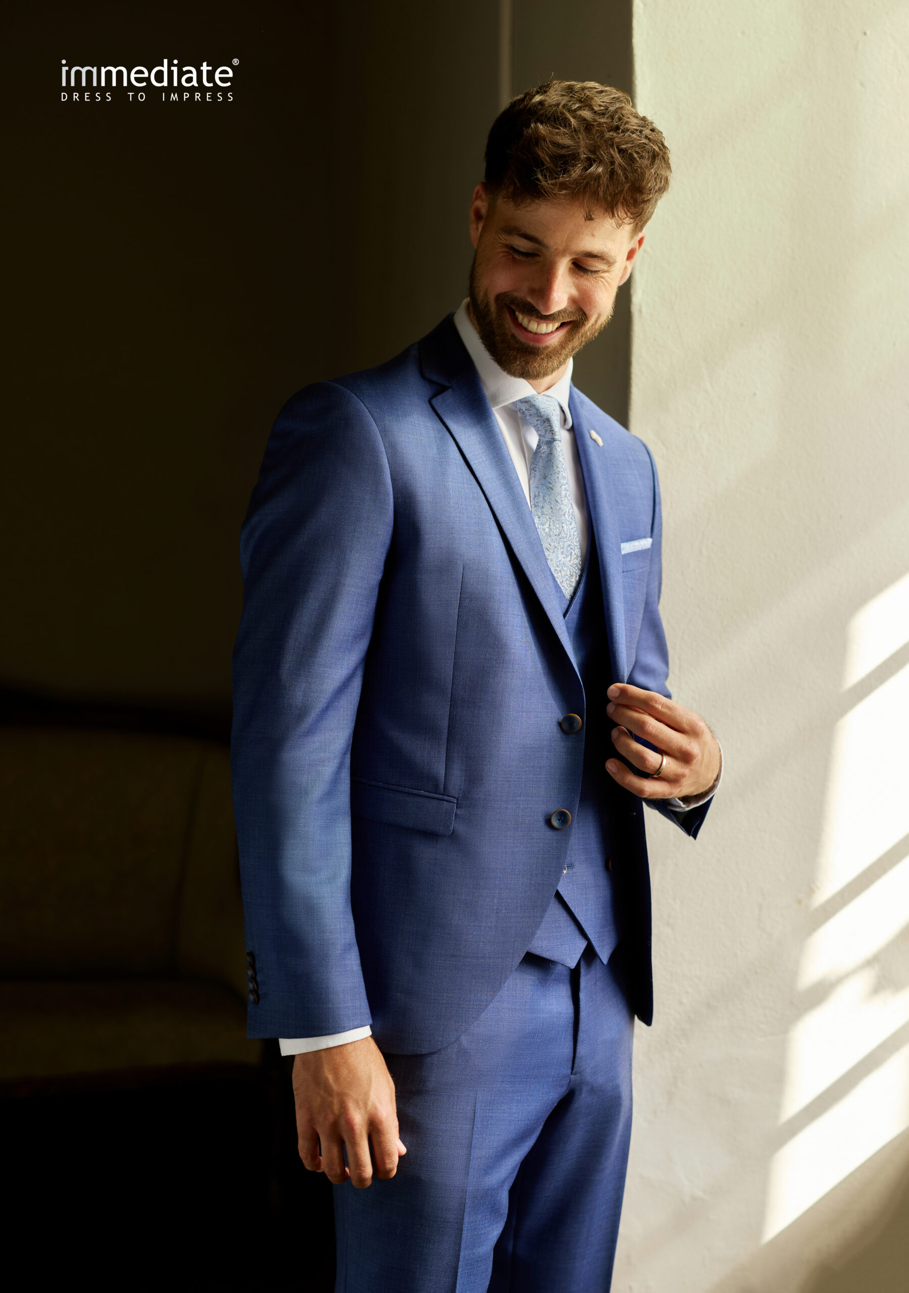 Dreiteiliger Herrenanzug in Mid Blue โ Moderne Eleganz mit klarer Linie
