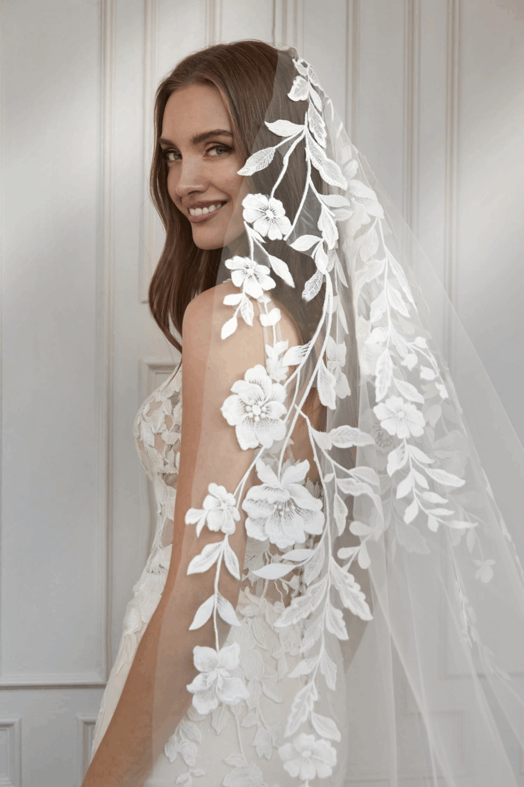 Dieses Spitzen-Design mit Tรผll und Glitzer zeigt eine Mermaid-Silhouette und einen Herzausschnitt โ ideal fรผr eine Braut, die einen markanten und eleganten Look sucht